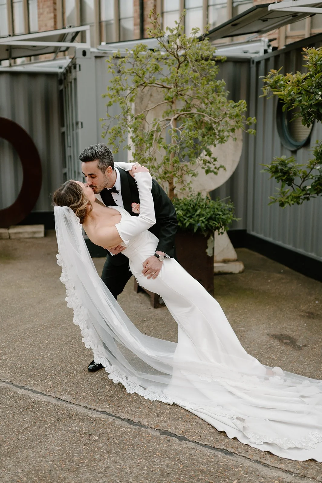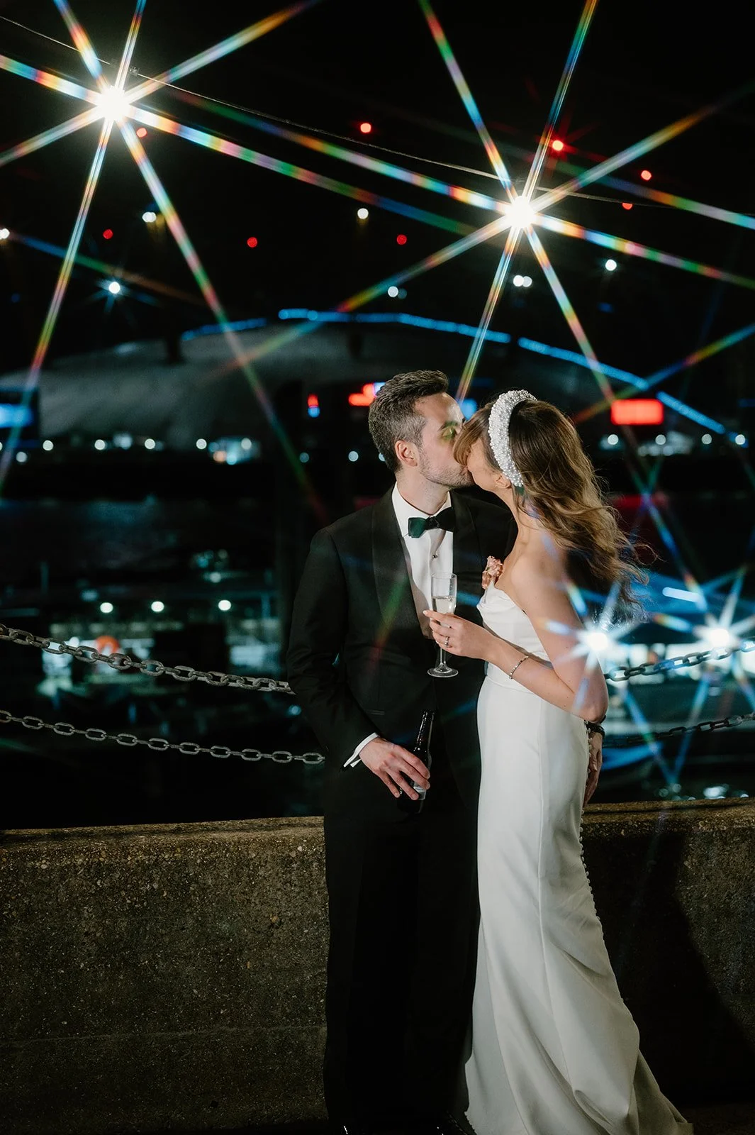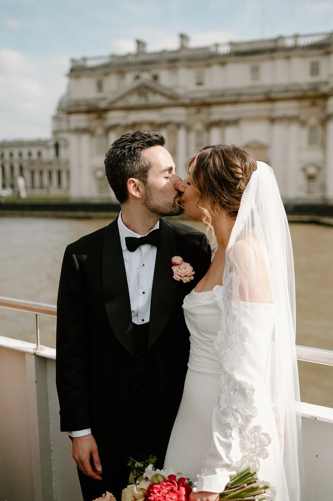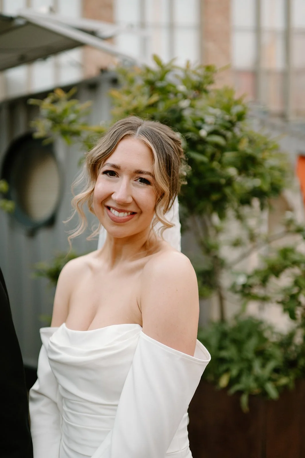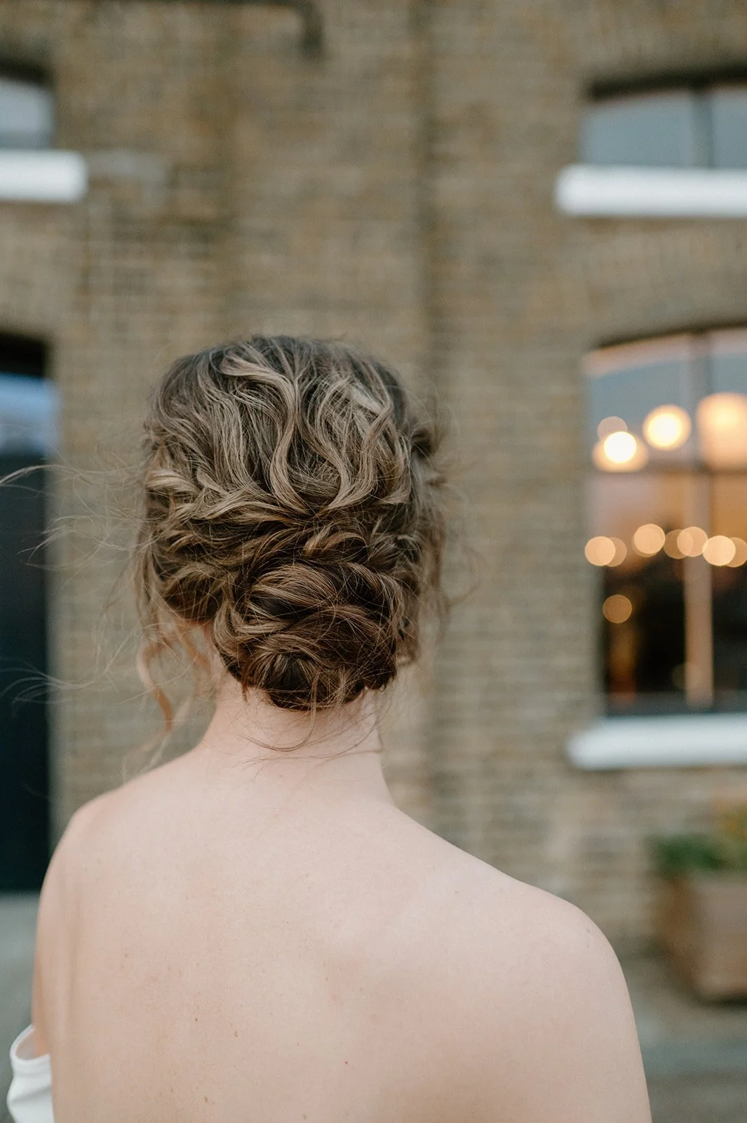 Caroline's beautiful London wedding started with a charming ceremony at the Old Royal Naval College in Greenwich and continued with a lively reception at Trinity Buoy Wharf on the River Thames. Caroline wanted a contemporary hair and makeup look that would perfectly complement her elegant dress and stylish city wedding.